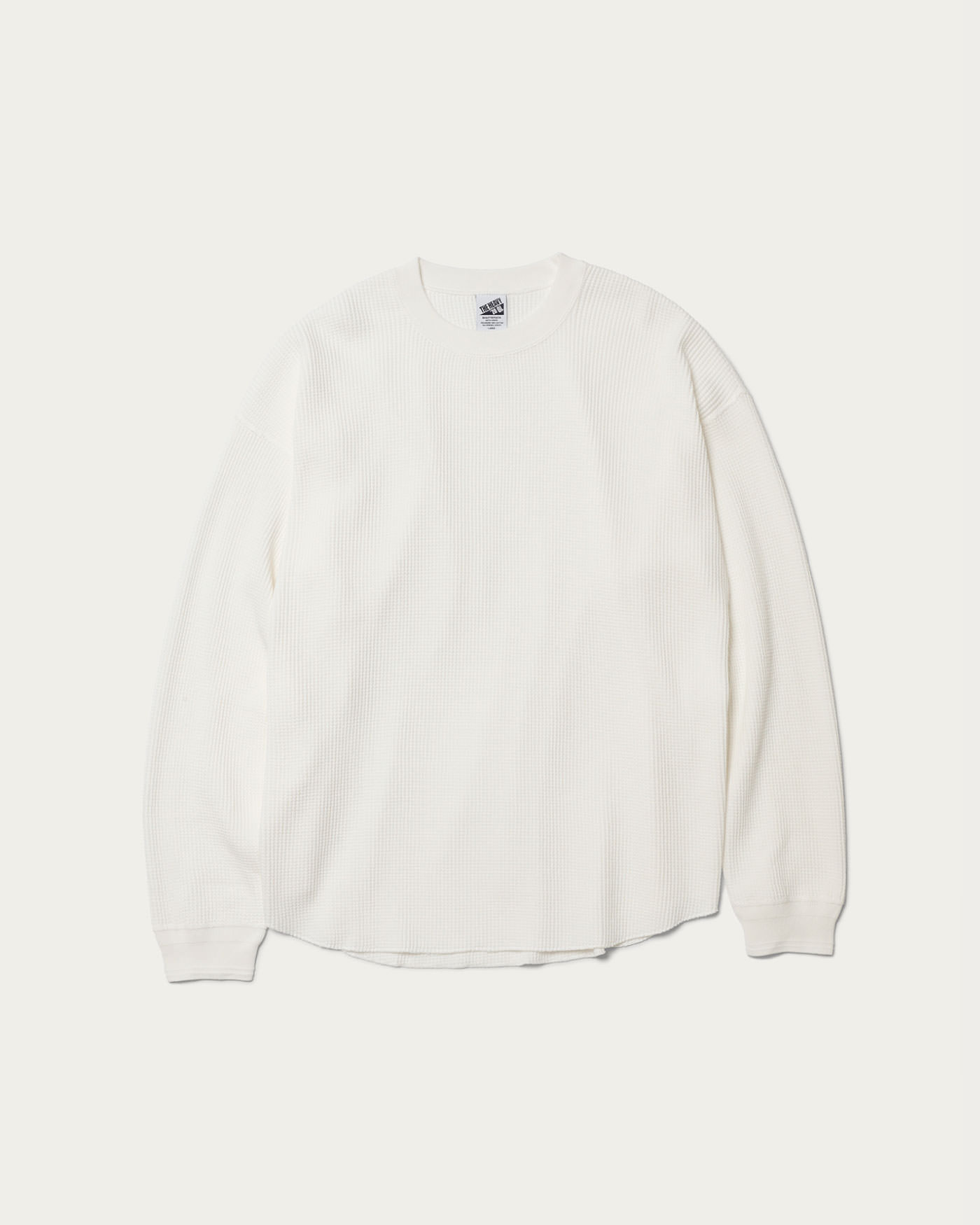 〈BEAUTY&YOUTH〉の定番人気商品、「10oz HEAVY TEE」シリーズのサーマル地で製作したロングスリーブTシャツ。ドライタッチな素材感とヴィンテージウエアっぽく仕上げた縫製が、アメカジなムードを盛り上げます。
