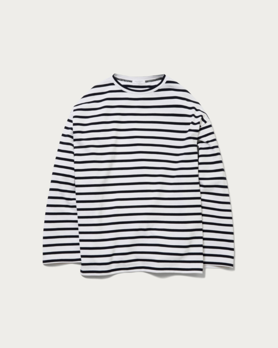 〈BEAUTY&YOUTH〉オリジナルのクリスピーコットンボーダー。ややドライタッチな風合いで着心地も抜群。クルーネックのようにリブのあるボートネックになっています。