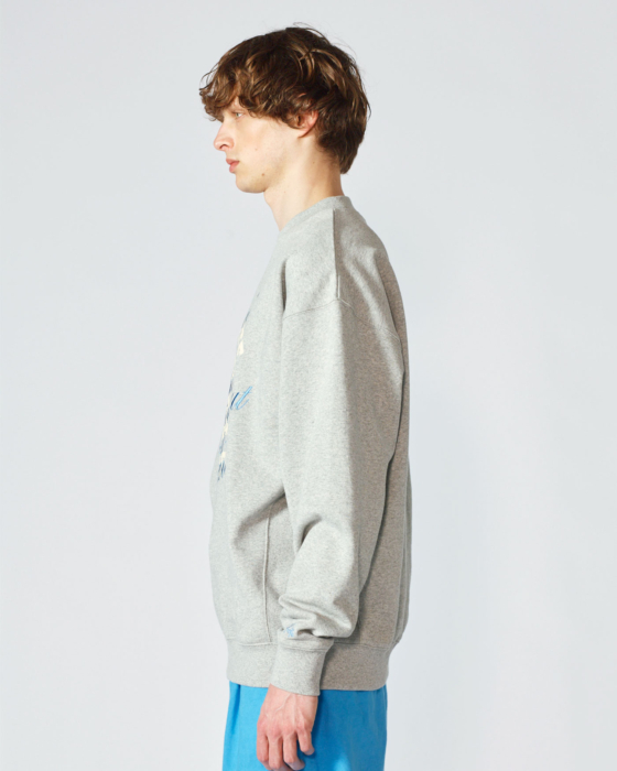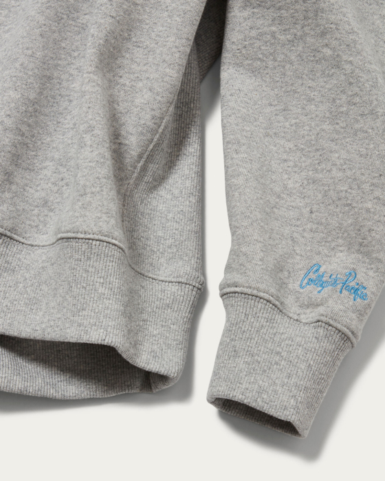〈Collegiate Pacific〉別注。カレッジロゴの上から筆記体文字を刺繍であしらった別注スウェット。