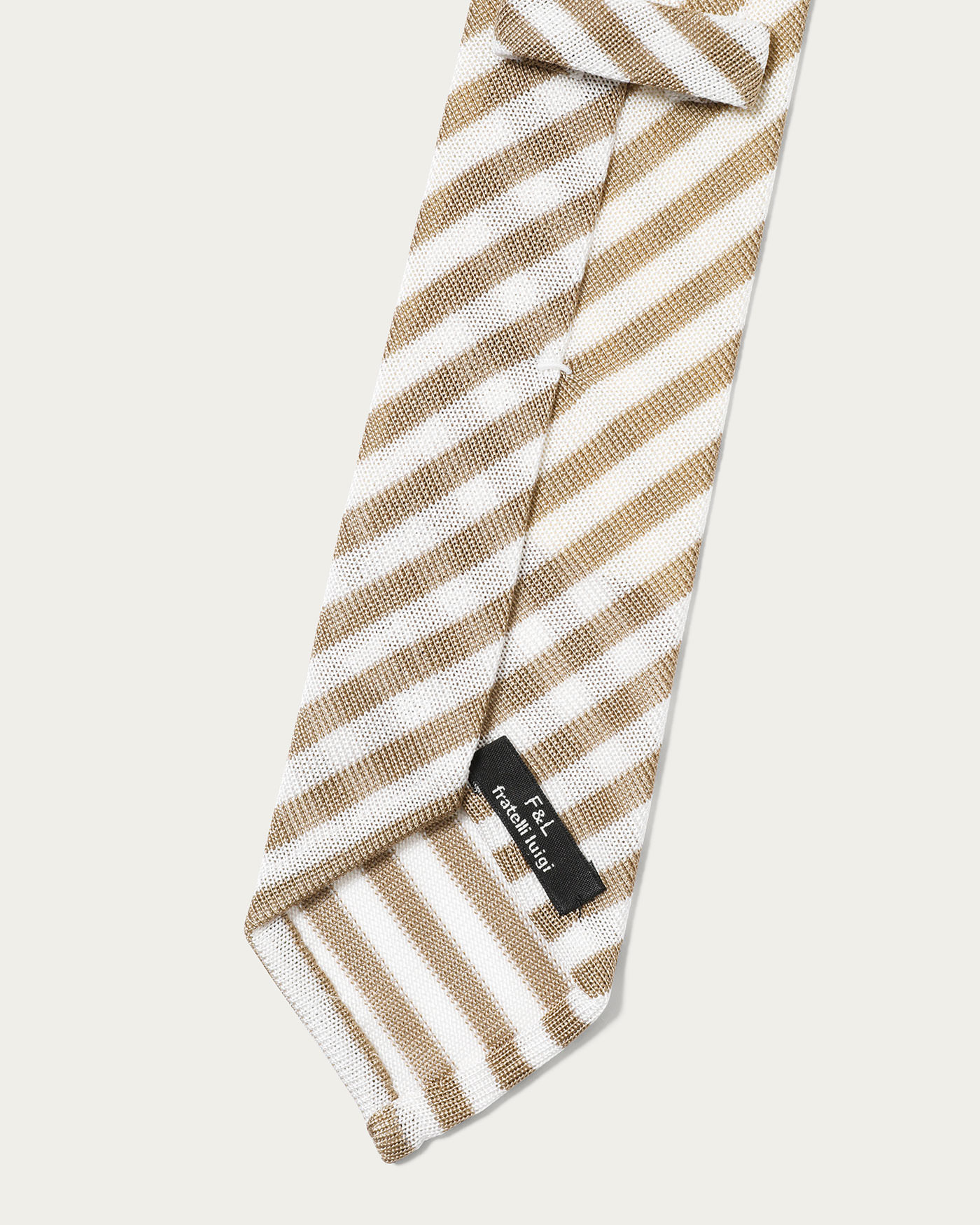細かい編地で構成したニットタイをご用意しました。ビジネスでも使用しやすい見ためと、ニットタイのもつ軽やかな雰囲気を併せもった遊び心のあるタイとなっています。