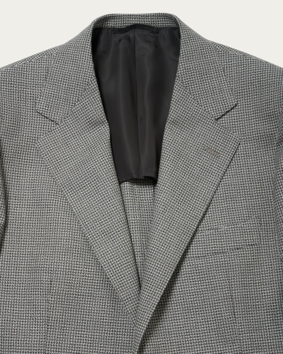 やわらかな風合いと上質な光沢感が特徴のイタリアの生地メーカー カルロバルベラで仕立てたジャケット。型はソブリンの「HAND」ラインで、ボタンホールやラペルステッチなどポイントによって手仕事で行なっているクラフト感のある仕立てとなっています。