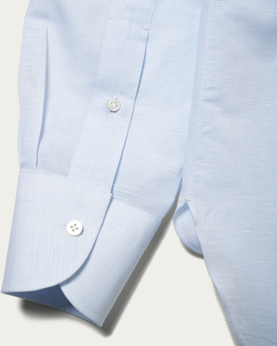 ソブリンの最高級ライン「PRESTIGE」のドレスシャツ。台襟の裏やアームホールなど随所にハンドワークを用いて、剣ボロや脇のシームステッチなどの縫製、細部のディテールなど見えない部分にもこだわって仕上げました。見ためと着心地の良さを追求し丁寧に一つずつ手をかけた特別なアイテムです。素材は綿と麻の混紡でとても清涼感があり、ドレッシーでありながら艶ぽさを演出できるのが魅力です。