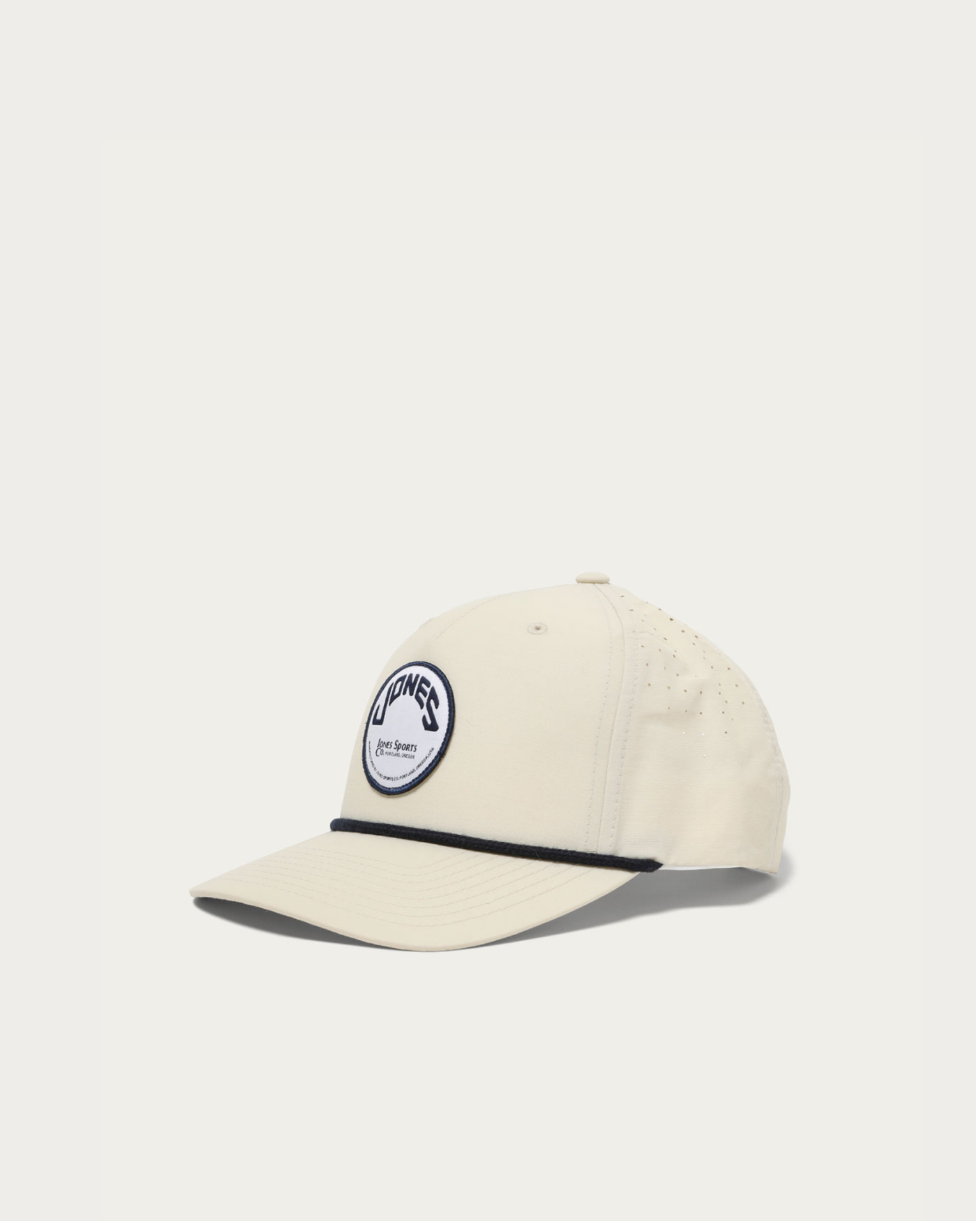 6パネルのシンプルなロープキャップ。円形のワッペンがアクセントになっています。アジャスターでサイズ調整が可能。後ろの部分はパンチング仕様で通気性を保ちます。