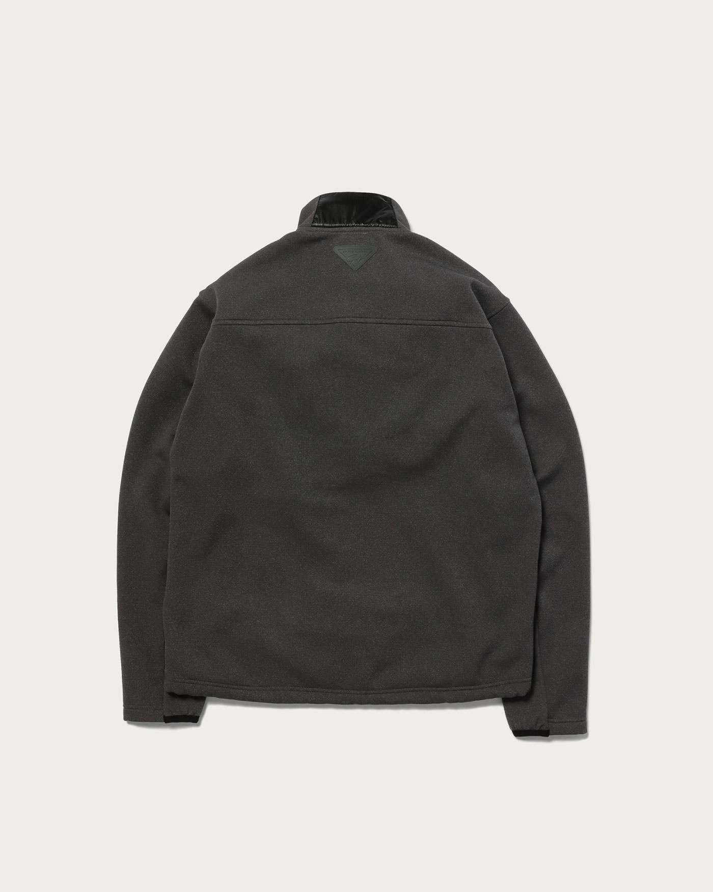 シンプルなスタンドジップタイプの前身頃が切り替えになったジャケット。ジャージ素材を使用し、すっきりとした着丈でアームも細みにしているためスウィングの邪魔にならないデザインにしています。