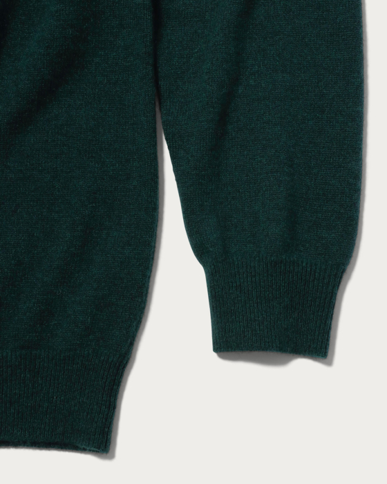 上品な光沢感と滑らかな肌ざわりのカシミヤをブレンドした素材を使用したクルーネックニット。身幅や袖周りは適度にゆとりを持たせたベーシックなデザインで、背面の襟元にワンポイントでロゴプレートがつきます。