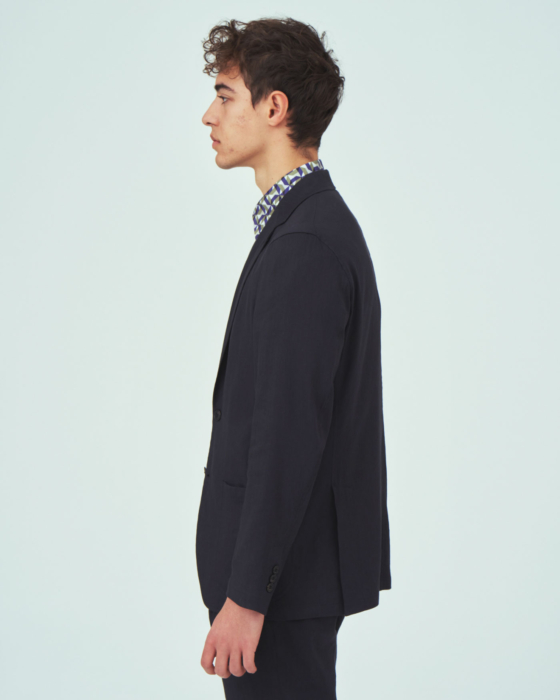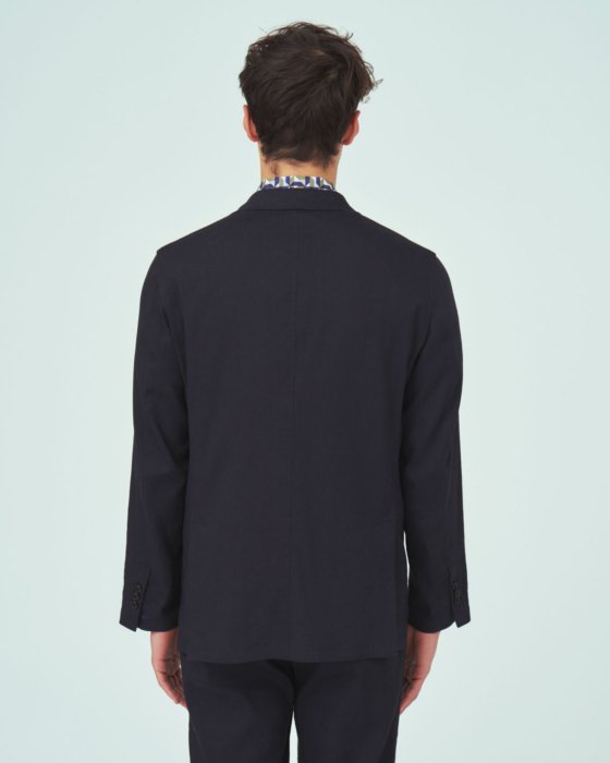 インポートのオーガニックリネンとリサイクルレーヨン素材を使用した2つボタンジャケットです。シャツジャケットのようなライトなコンストラクションと、適度なゆとりを持ったサイズ感がより一層の軽快感を演出します。