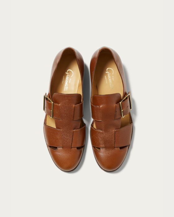 イタリア北部ドロミテ、アルプスを眺めるベネト地方に唯一残る職人メーカーのシューズブランド。新作のグルカシューズは、グレインレザーを用いた太めのストラップと、クラシックな金具使いが新鮮です。