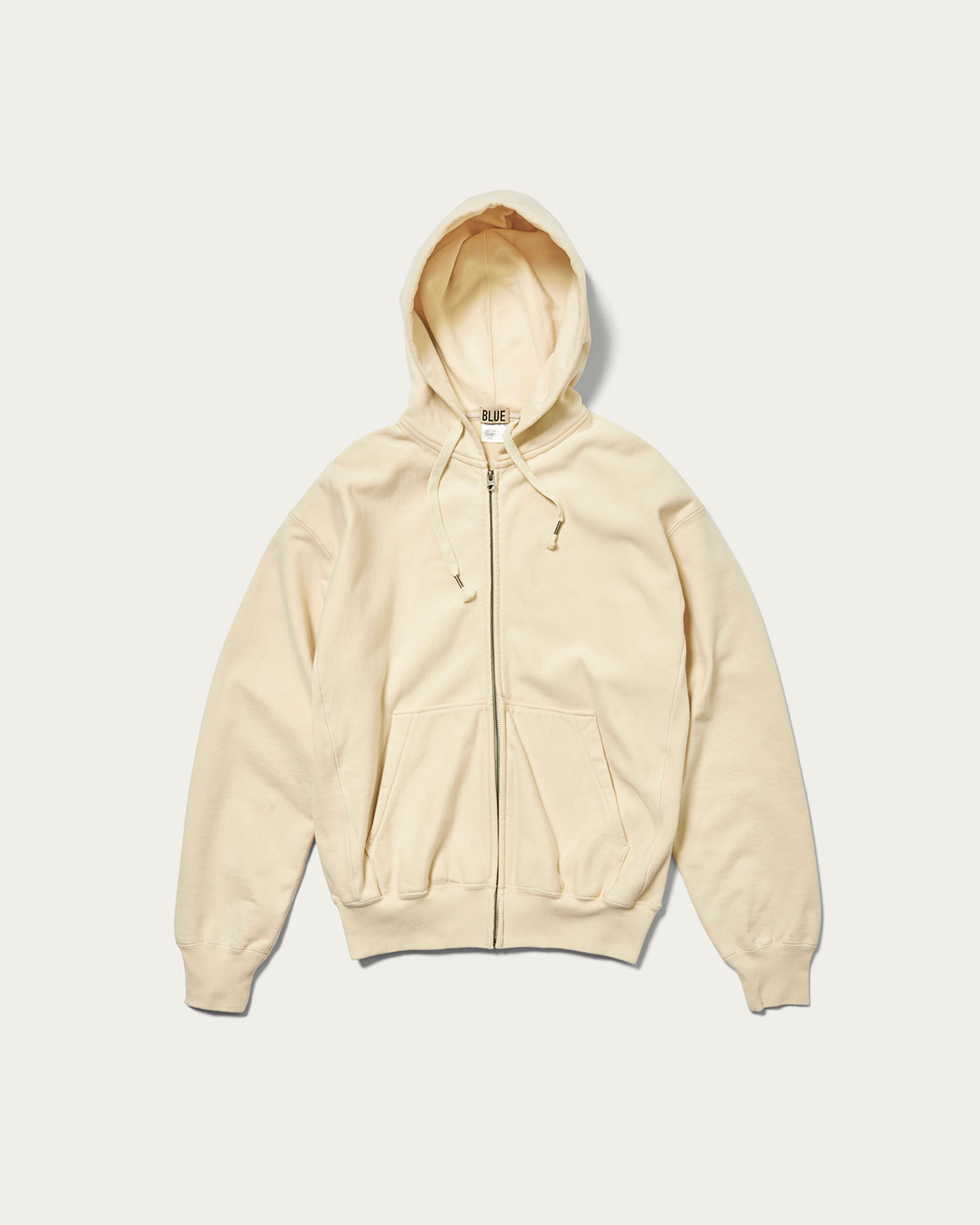 ヘビーウェイトのオーガニックコットンを使用し、極限まで度詰めしたスウェットジップフーディです。リブ仕立ての襟ぐりや裾、サイドの切り替えがアクセントです。ゆとりのあるサイズ感で優しいペールトーンで展開します。