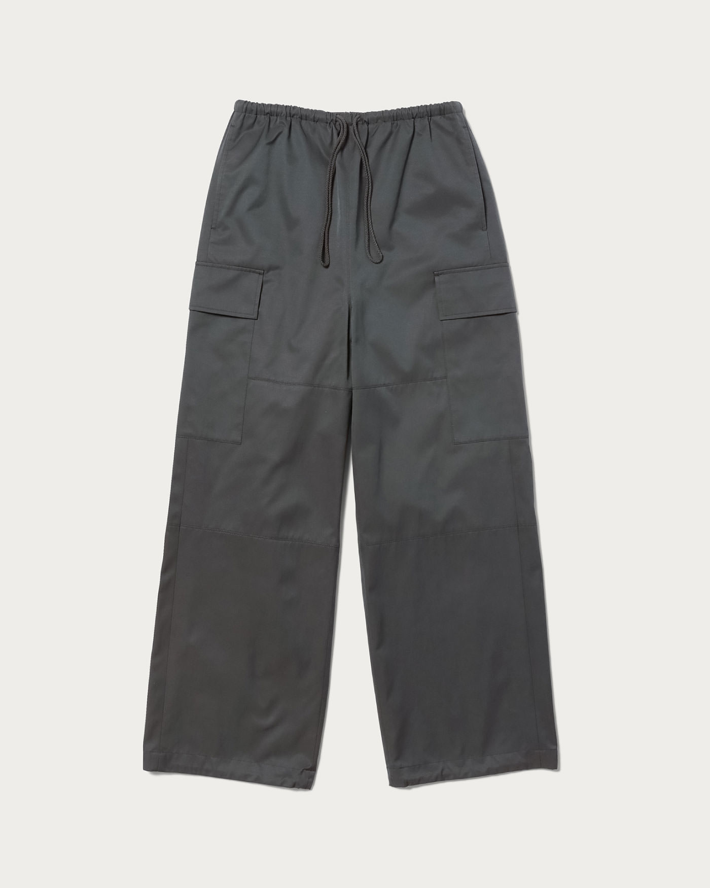 ウエストのドローコードがリラックス感漂う6ポケットのカーゴパンツ。裾にもドローコードを施しているので裾を絞ってアレンジいただけます。ハリ感ときれいめな表情が特徴のポリエステルコットン素材です。シャツやパーカーにあわせてマニッシュな着こなしも好相性です。
