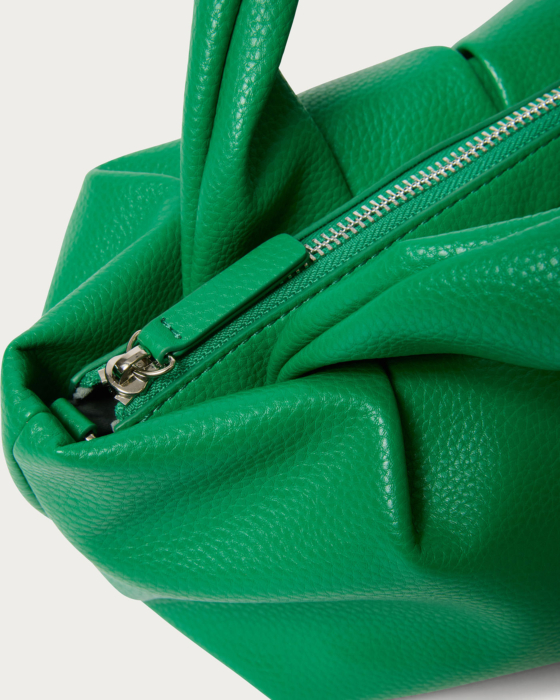 タックを寄せた柔らかい印象のトートバッグ。ニュアンスのあるコンパクトなハンドルが女性らしさを演出します。サイドに広めのボート型は、長財布やマイボトルもしっかりと収納可能なフレキシブルなデザイン。深さの浅い間口は、ジップを付けることでバッグの中身が見えてしまう心配もなく、欲しい物にアクセスしやすい仕様。細かい物の収納に便利な、内ポケットも完備されています。