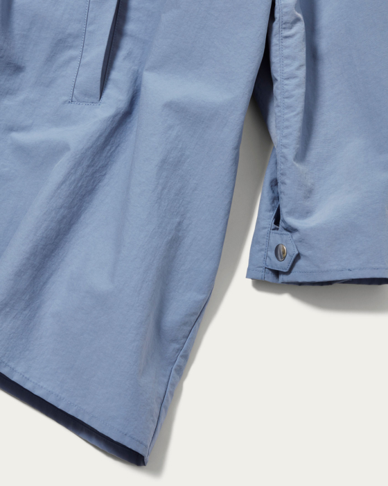 環境に配慮した「ECONYL(エコニール)」というリサイクル素材を使用したフード付きブルゾン。ポンチョのようなワイドシルエットで、様々なコーディネートに気軽に羽織れる一着です。コバルトとブラック2色展開です。