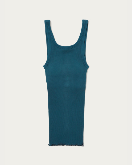 別注のブラタンクトップ(品番:1617-599-5752)と同じ生地でキャミソール型のモデルをイチから別注作成。カップ付きなので気軽に着用頂けます。細すぎず、太すぎないストラップと首元の開きのバランスに拘り、カジュアル過ぎず、でも綺麗目過ぎない、程よくヘルシーな着こなしが出来る仕上がりです。深めに開けたバックスタイルもポイントです。