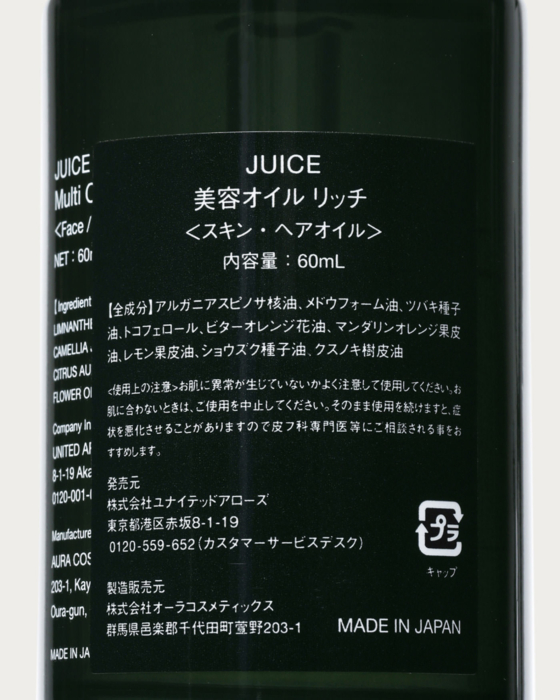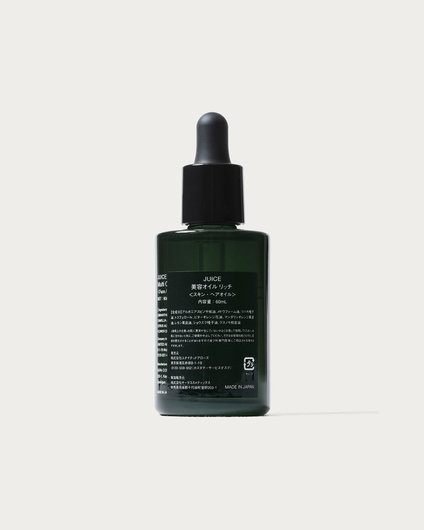 ナチュラルな植物オイルと精油だけでできた、天然オイル。リッチな潤いを与える加唐島のヤブ椿オイル(ツバキ種子油)と、アルガンオイルを配合。コクのあるオイルが潤いのヴェールで肌を包み、弾力感とハリのあるしなやかな肌へ導きます。手応えのあるエイジングケア、乾燥が気になるところの集中ケアに。肌に吸いこまれていくような天然の植物オイルならではの贅沢な感覚も特徴です。フェイス、ボディ、ヘアにおすすめ。ビターシトラスのほのかな香り。