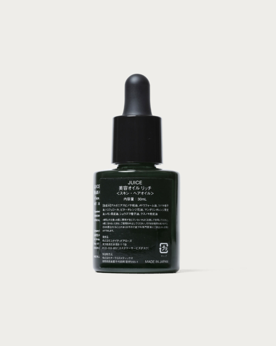 ナチュラルな植物オイルと精油だけでできた、天然オイル。リッチな潤いを与える加唐島のヤブ椿オイル(ツバキ種子油)と、アルガンオイルを配合。コクのあるオイルが潤いのヴェールで肌を包み、弾力感とハリのあるしなやかな肌へ導きます。手応えのあるエイジングケア、乾燥が気になるところの集中ケアに。肌に吸いこまれていくような天然の植物オイルならではの贅沢な感覚も特徴です。フェイス、ボディ、ヘアにおすすめ。ビターシトラスのほのかな香り。