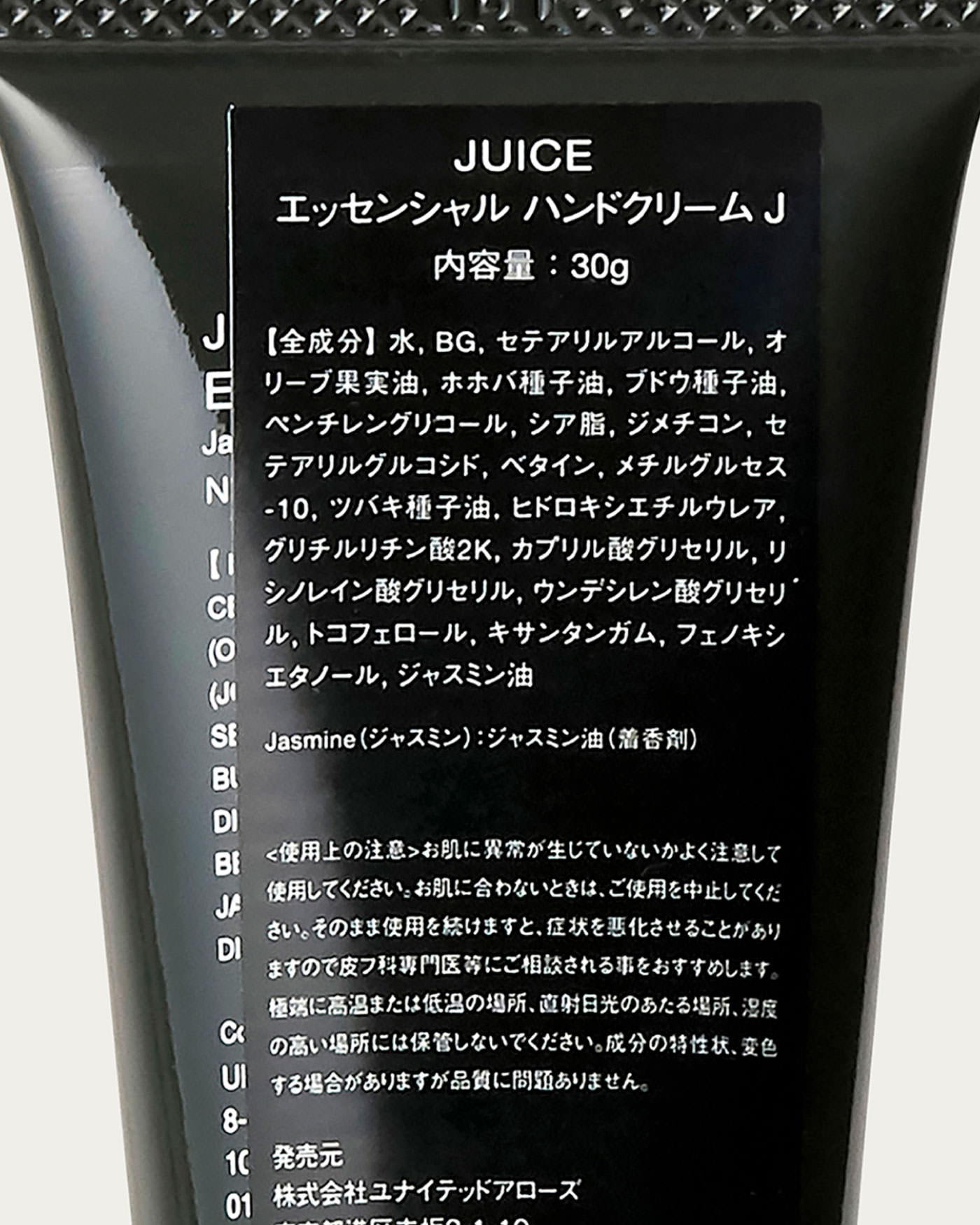 ジャスミンの香りの肌を柔らかくしなやかに、みずみずしく潤すハンドクリーム。乾燥が気になる手指をすっきり保湿。肌なじみがよく潤いを与える 加唐島のヤブ椿オイル(ツバキ種子油)に、皮膚を柔らかく保つホホバオイルやシアバターも配合。ベタつき感がないので日中のハンドケアや、就寝前のケアとしてもおすすめです。