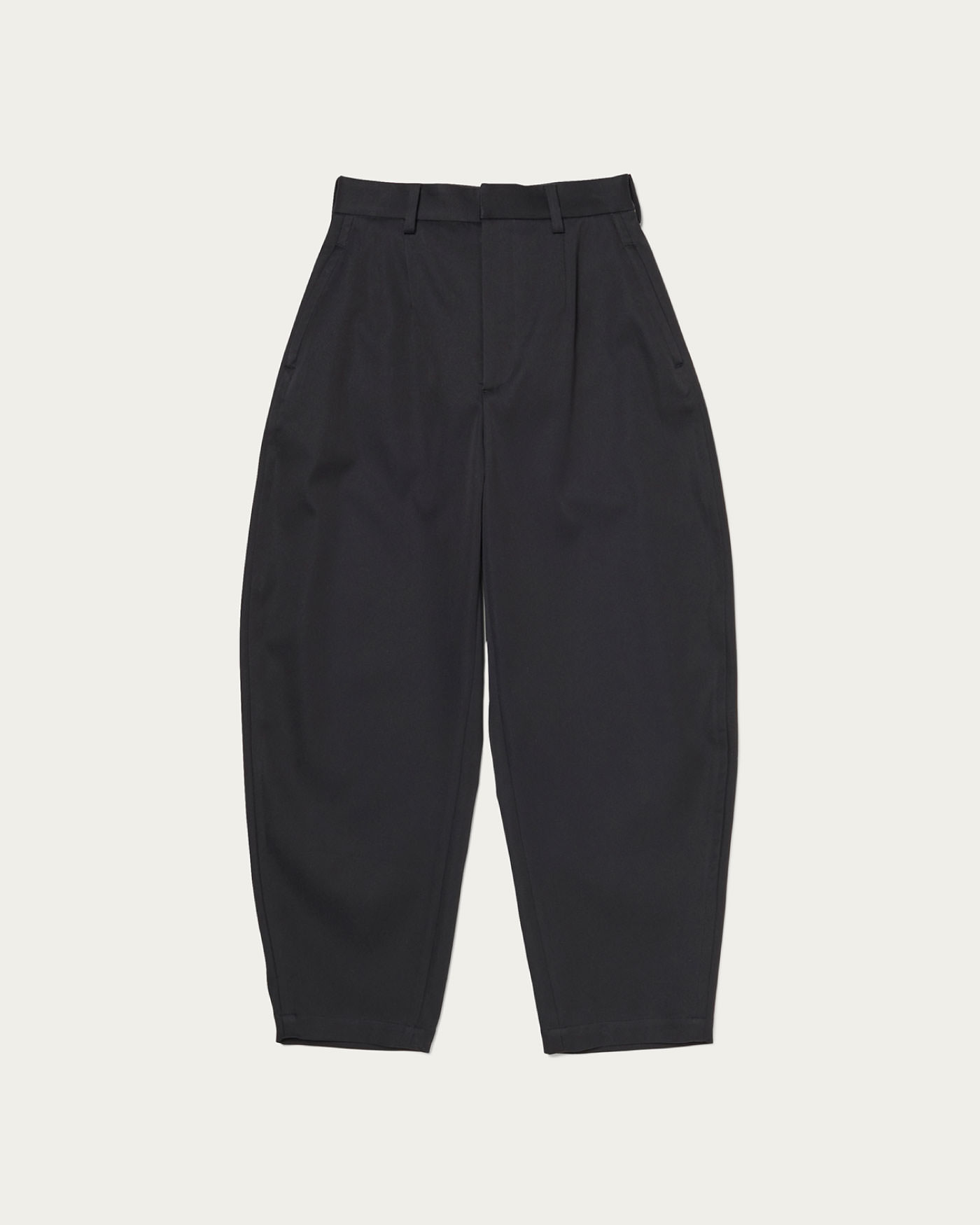 ジョッパーズのような雰囲気のボンタントラウザーは動きやすいので着心地もよくシルエットに特徴のあるデザインです。経糸にオーガニックコットン、緯糸はポリエステルを使用したハリコシのあるきれいな表面感のダブルクロス素材です。