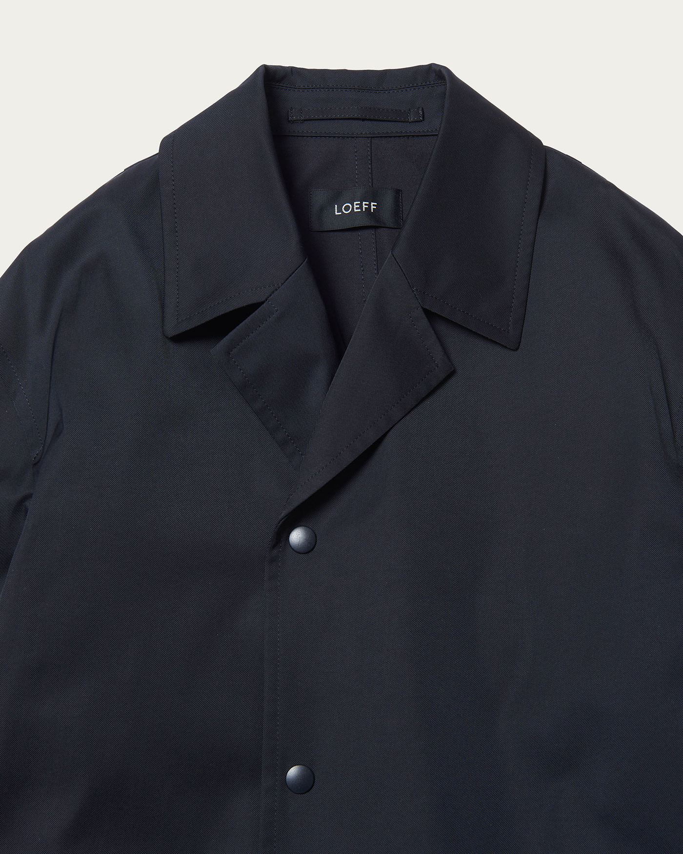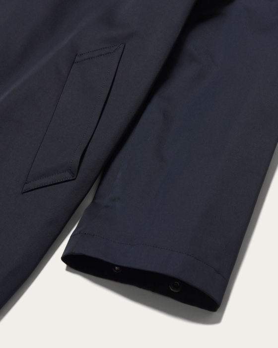 OLMETEX社のカルゼ素材を使用したテントラインのロングコート。さらっと羽織れるアウターはデイリーな着こなしに重宝する1枚です。縦糸に細番手ポリエステル糸、緯糸にコットンで逆綾織にし、程よく緯糸のコットンが表面に出てくることでナチュラルな見え方ながらきれいめなつやのある表面感に仕上がっています。