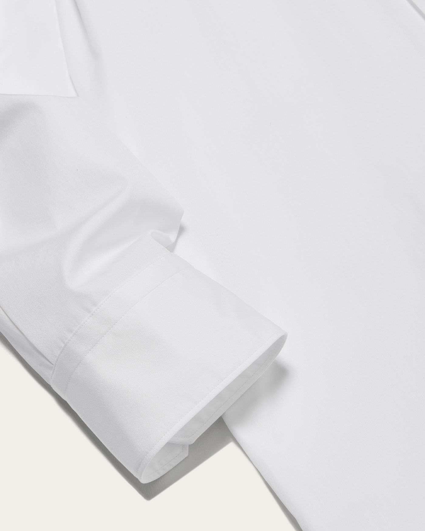 上品で滑らかな質感が魅力のコットンブロード素材で仕立てたレギュラーカラーシャツ。肌に触れたときのしなやかな着心地をお楽しみいただける一着に仕上がっています。ややゆったりとしたサイジングで、マニッシュな雰囲気のルーズフィット。ワードローブの定番として、長年飽きずにご愛用いただけるアイテムです。