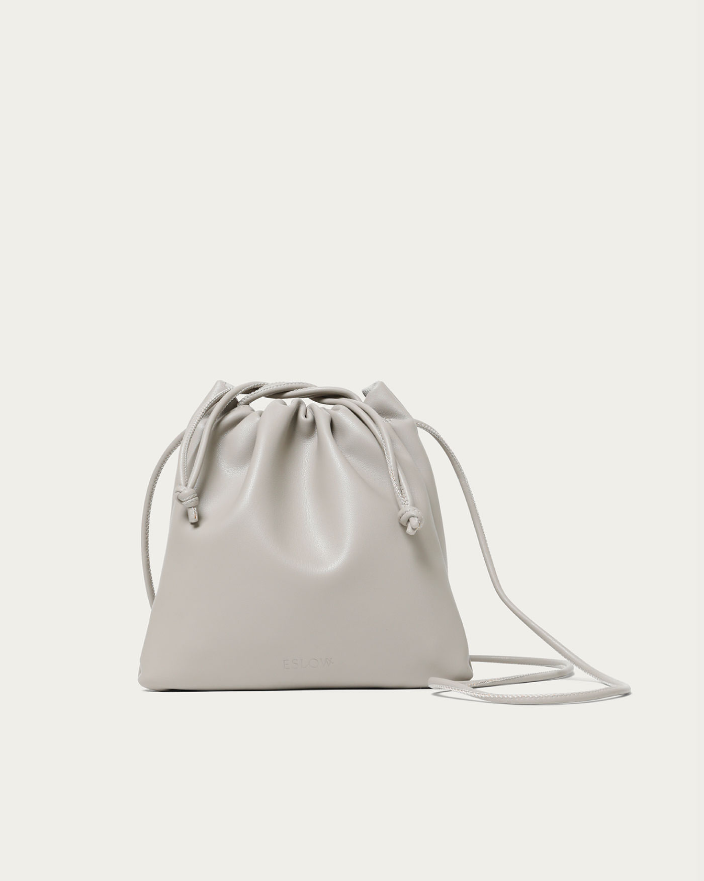 ふんわりとしたフォルムが魅力的なショルダーバッグです。落ち着いた雰囲気のグレーとブラウンの2色を別注でご用意しました。ソフトな素材感と巾着タイプのデザインでデイリー使いしやすいアイテム。華奢なストラップで上品さをプラスし、大きすぎず小さすぎないサイズ感もポイントです。