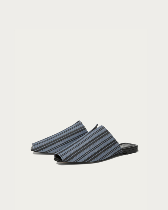 ストライプやブロックチェックの柄が目をひくミュールです。オープントゥのつま先と踵のラインをスクエアにし、インソール部分をブラックで統一したカジュアルになりすぎない大人のリラックスシューズ。深めの履き口にはV字スリットを入れ、甲を覆いながらもすっきり見えるデザインです。ゆったりとした履き心地で歩行時の圧迫感が少ないのも嬉しいポイント。