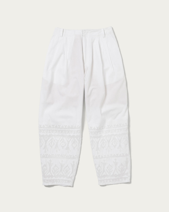 表面の生地にカットワークを施して形を形成する、インドのアップリケ文化の象徴的な手法のひとつを用いたパンツ。独特のシボ感やネップの風合いが残るインドならではのしっかりとした平織りに仕上げた生地を使用。一針一針手縫いされたアップリケは、裏から見ても美しい仕上がり。現代の装いに古来からの手仕事を組み入れることで、その魅力を新たに引き出したシリーズ“Phoebe”。※カラーにより展開店舗が異なります。詳しくは店舗へお問い合わせください。