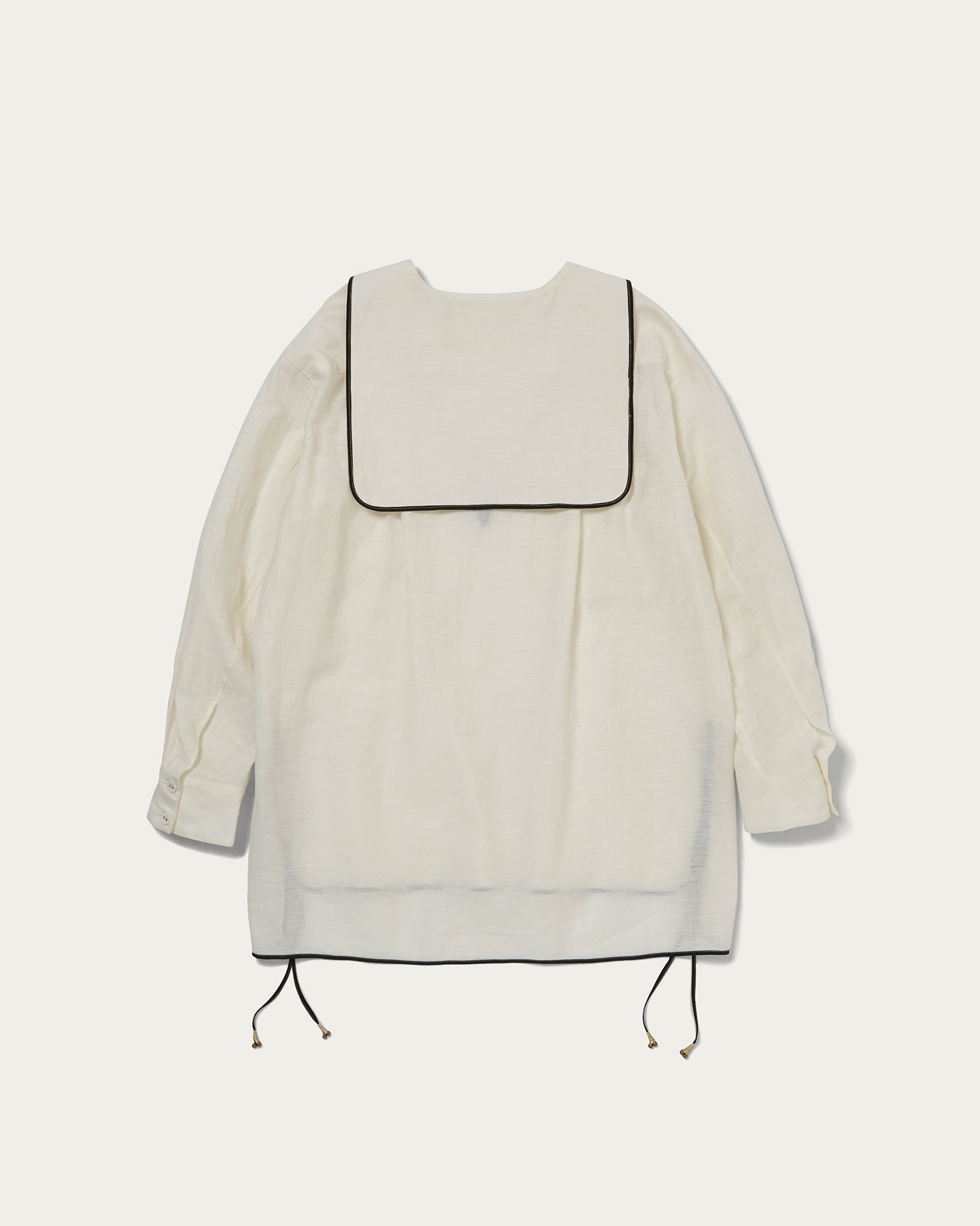 様々な文化や時代を超えた、自由な装いの楽しさを表現したシリーズ“Lily”。インドの民族衣装や刺繍などに広く用いられ愛されてきた、煌びやかな金糸をパイピング部分などに施しました。独特なハリと、ほのかに糸の節が残る透け感を持たせた生地が特徴。裾の紐先には鈴のチャームを装飾としてあしらうなど細部まで丁寧に仕上げたシャツです。※カラーにより展開店舗が異なります。詳しくは店舗へお問い合わせください。