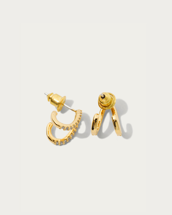 V字にカーブした華奢なピアス。光が当たるたび美しく輝き、小ぶりながらも存在感のある一品。洗練された装いへ格上げしてくれるような上品さが漂います。オンオフ問わずに身に着けられるデザインは、さまざまなシーンで活躍してくれます。