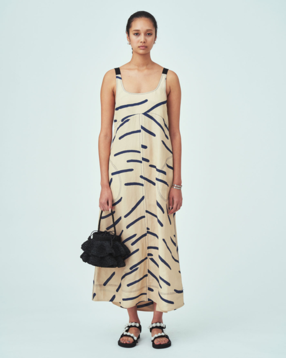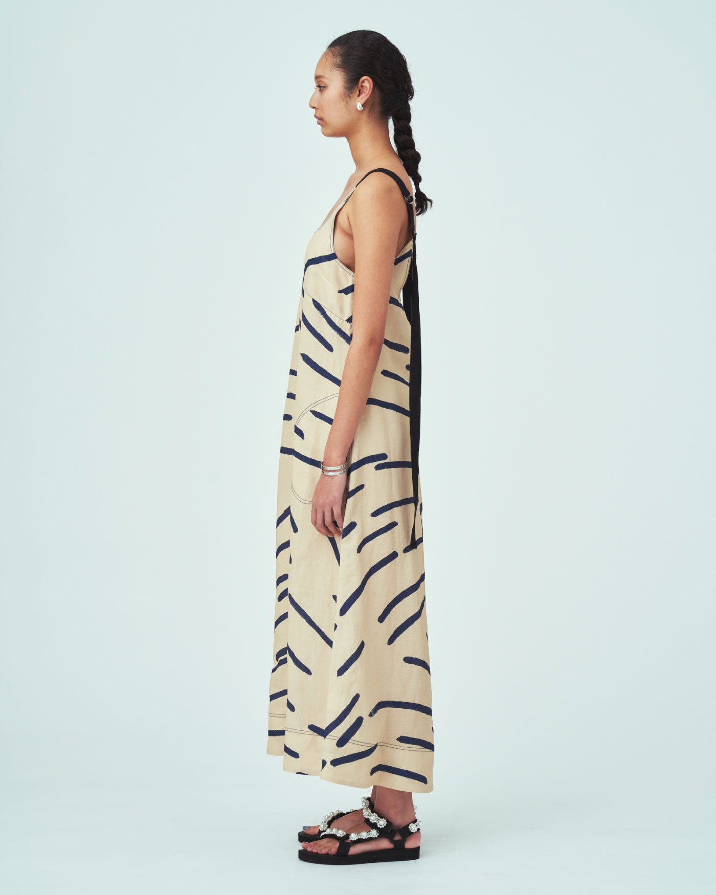 2019AWシーズン好評だったワンピースをユナイテッドアローズの別注として復刻。ブラシタッチのプリントが印象的なマキシ丈は、カジュアルな中にも女性らしさが引き立ちます。アジャスタブルなストラップもデザインポイント。ニットやカットソーなど幅広く合わせることができ、オールシーズン着用できるアイテムです。