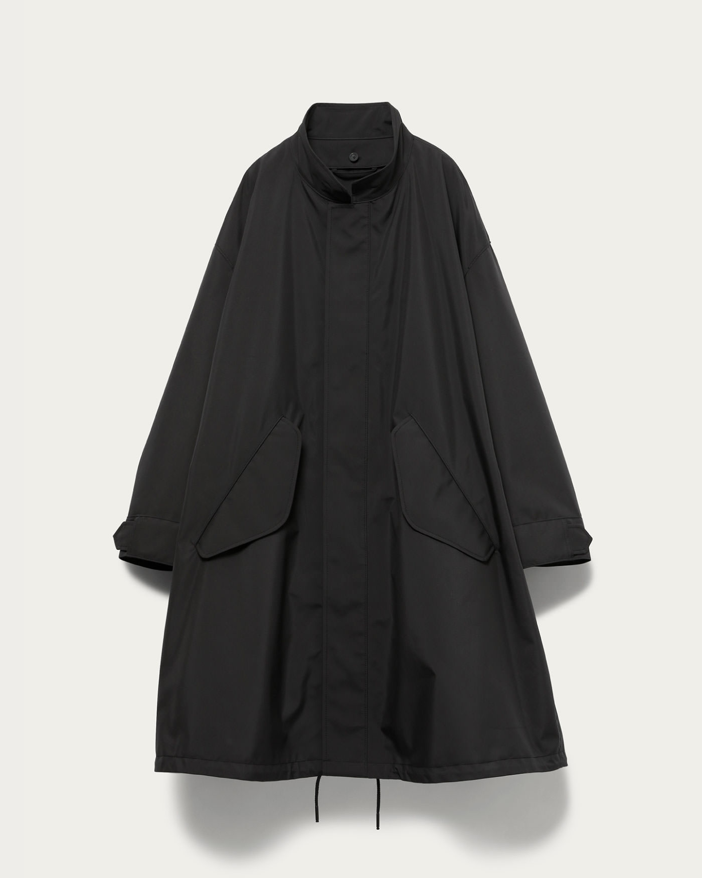 ドロップショルダー型のロングモッズコートを別注。コレクションから、38サイズをベースに着丈は3cmマイナス、カフス巾はマイナス2cm、ポケット・ウエストコードは2cm高く変更しました。ベーシックなブラックカラーはユナイテッドアローズ限定カラーとしてご用意。別売りのボアライナーも取り付けられるファスナー付きです。ゆったりとした腕周りはインナーの幅も広がり、長く愛用できる一着です。