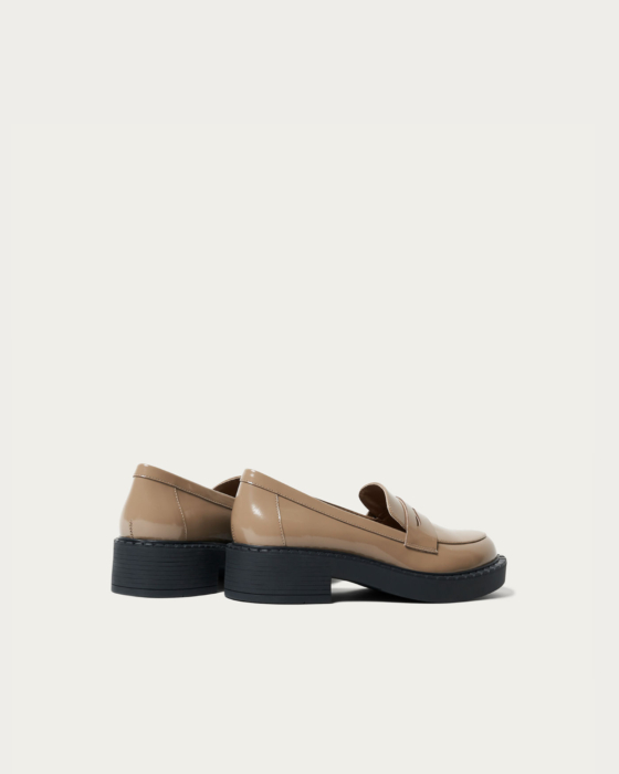 ベーシックなアッパーデザインとトレンド感あるボリュームソールが目をひくローファー。ツヤ感のある素材を使用したことで、カジュアルな印象のフォルムに女性らしさと軽やかさをプラスしてくれます。足もとに程よいボリュームを足すことでワイドボトムスやAラインのスカートでも全体のバランスがまとまります。
